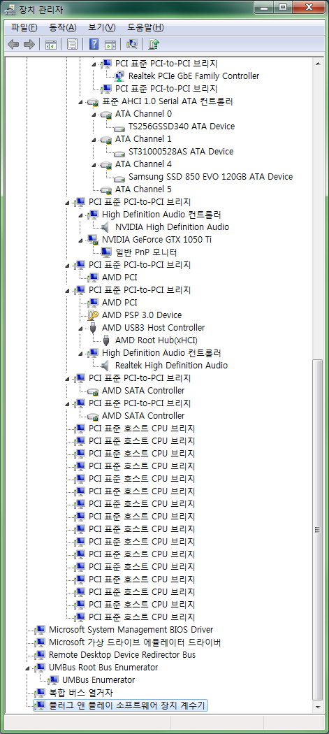 PCI나 PSP, IOMMU, SMBUS 등의 드라이버가 안 잡혀 있을텐데 이건 AMD 공홈에서 해당 칩셋 드라이버를 받아 설치하면 된다