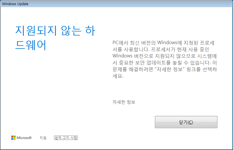 지원되지 않는 하드웨어라고 엄포를 놓으며 업데이트가 되지 않는데 기존에 공개돼있는 wufuc 등의 툴로 간단히 해결 가능하다