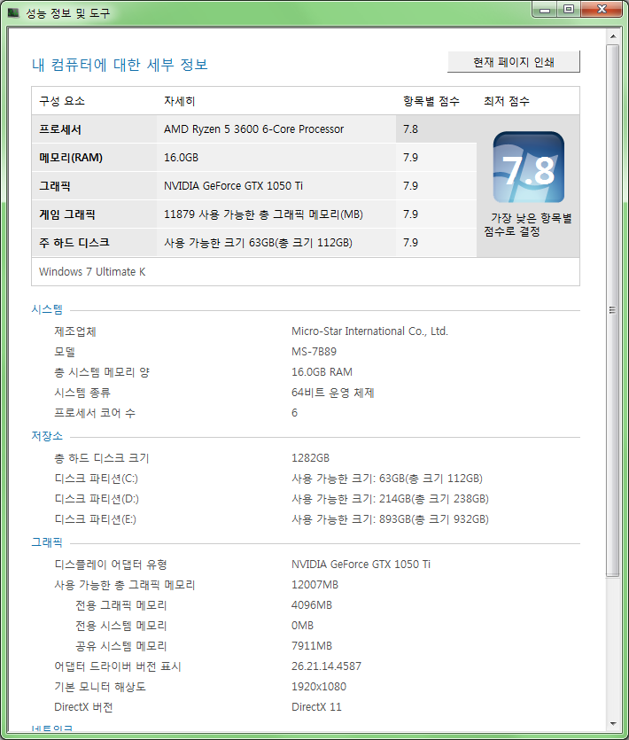이 이미지로 설치를 진행하니 굳이 AMD 공홈에서 B450 칩셋용 드라이버를 다운받아 설치하지 않아도 장치 관리자에서 대부분의 장치가 온전히 잡혀있었다