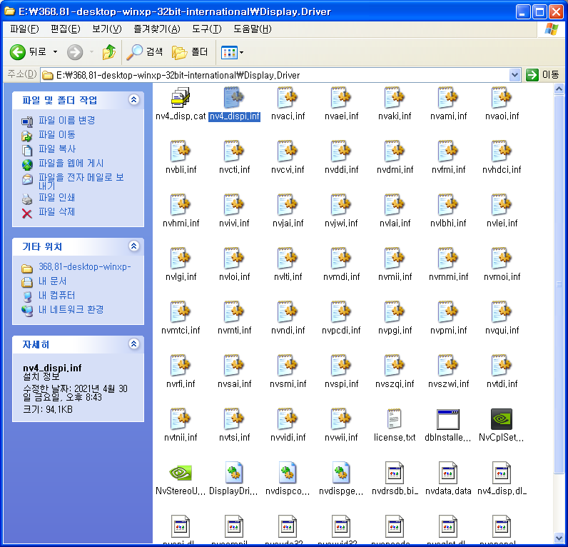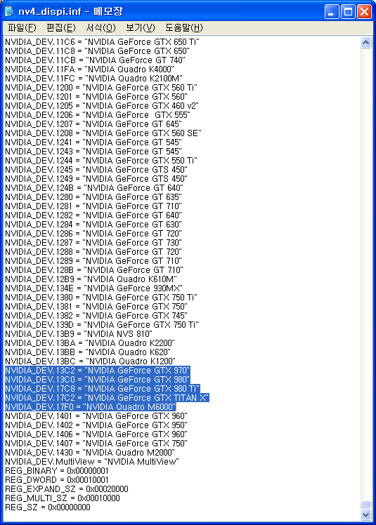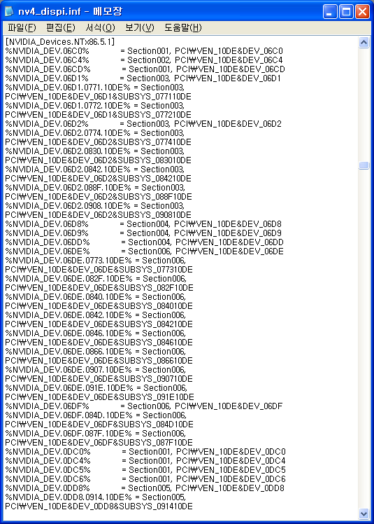Display.Driver 폴더의 nv4_dispi.inf 파일을 메모장으로 열어