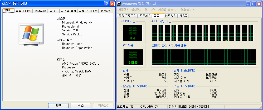 9900KS 본컴에다 XP를 설치해보니 HT가 날아가서 걍 8스레드로 인식되고 있었다