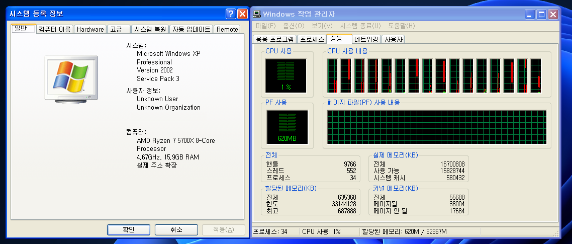 덤으로 윈도우 XP에서도 16스레드가 정상 인식된다