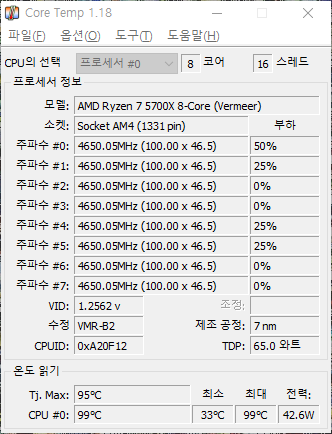 FPU 테스트는 99도로 아슬아슬하게 방어