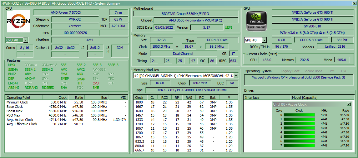 혹시나 2023년 4월 이전에 이 글을 참고하여 AMD 500번대 칩셋에 강제로 XP를 설치했다가 이상증상을 겪는 분이 있다면 다른 운영체제로 부팅하여 ACPI.sys 파일을 저 최신 버전으로 교체해주도록 하자