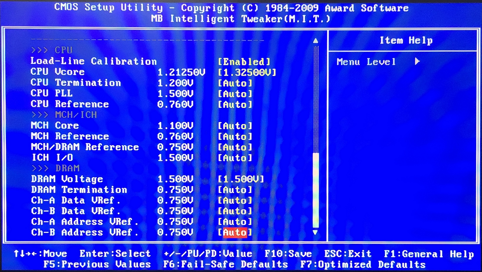 CPU 전압은 1.325V에 로드라인 캘리브레이션을 켜줬다