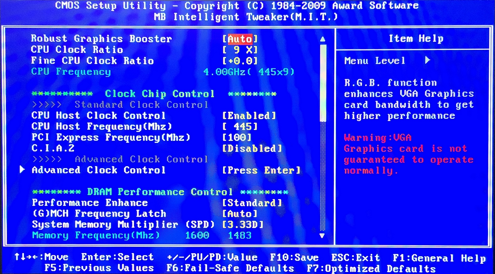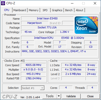 FSB 445에 9배수를 적용시켜 4.0GHz을 달성했고 비율은 3.33배로 설정하여 램 클럭을 1483MHz로 해놨다
