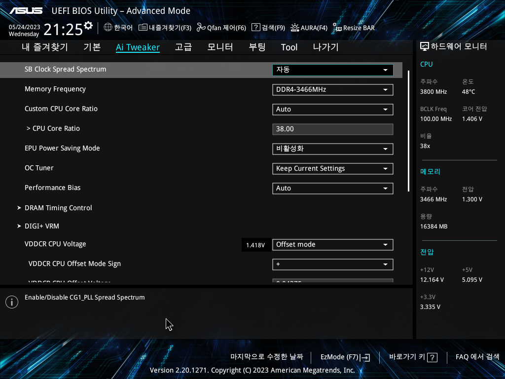 그대로 세팅을 마치려고 했으나 기본 전압이 1.4V 넘게 박히고 있고 아이들 온도가 70도 찍고 난리나서 추가로 좀 더 손을 봤다