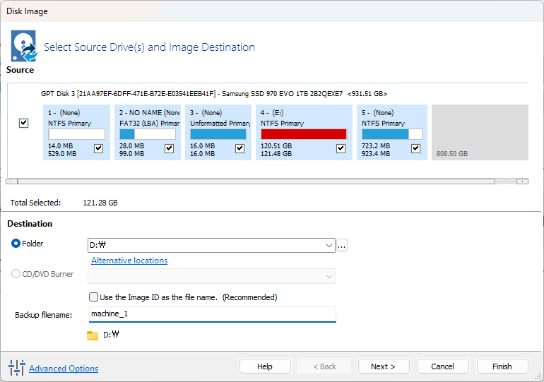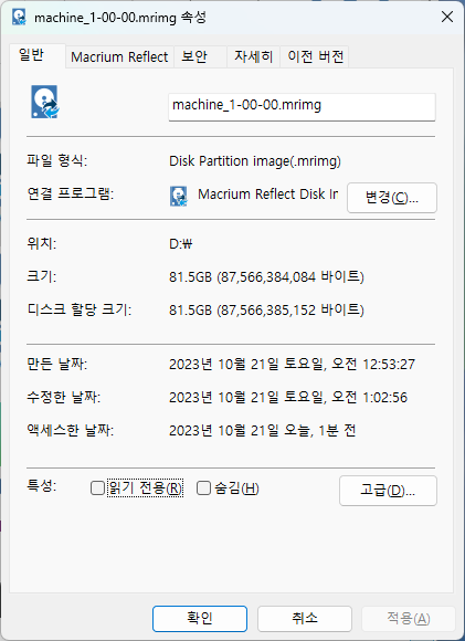 약 9분여의 기다림 끝에 디스크 이미지 생성