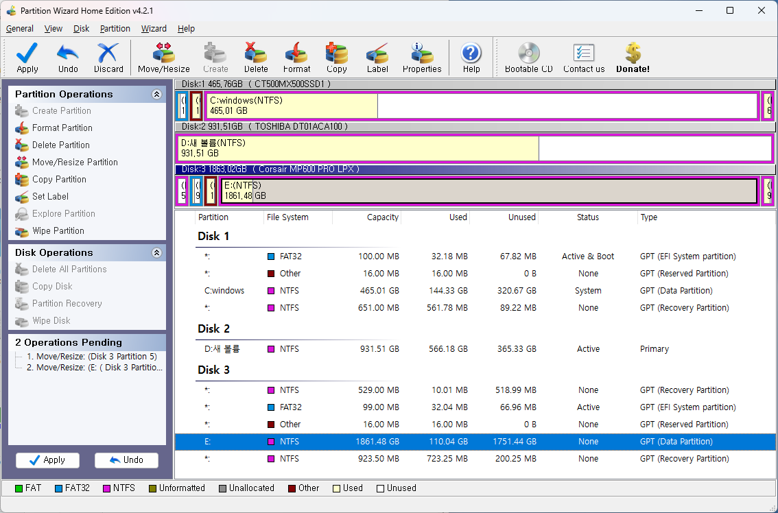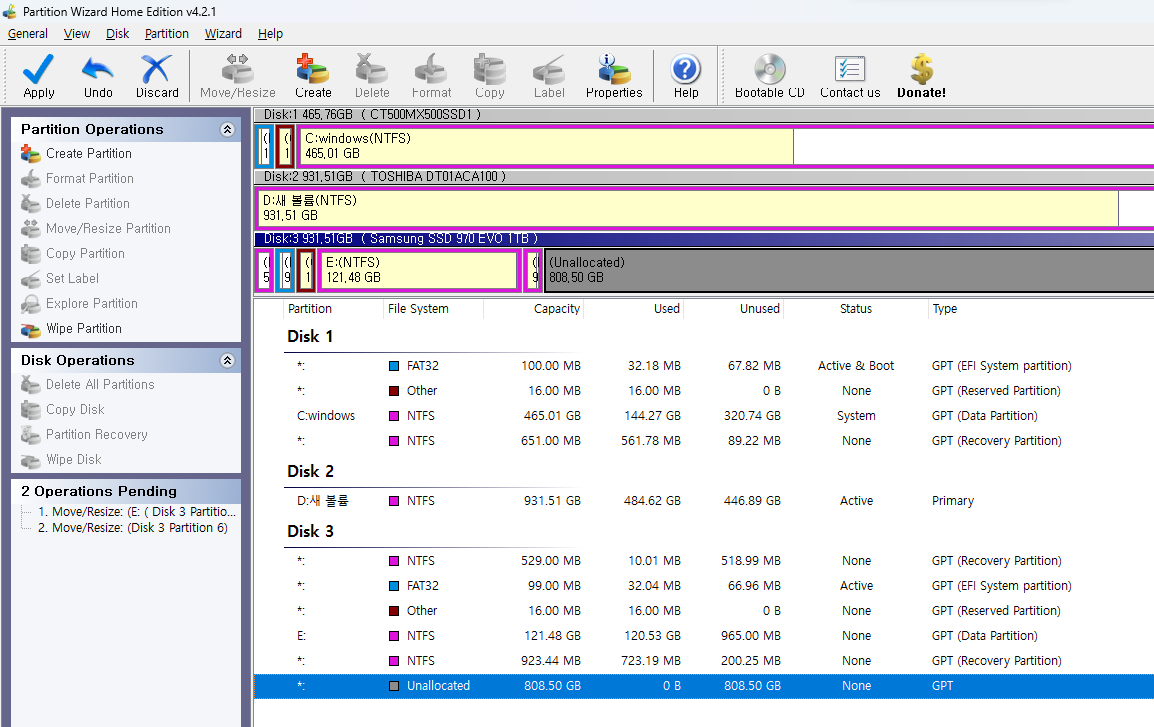 파티션도 용량 늘어난거 맞춰서 늘려주고