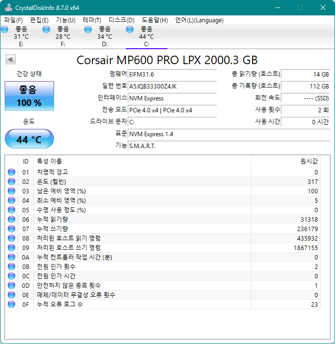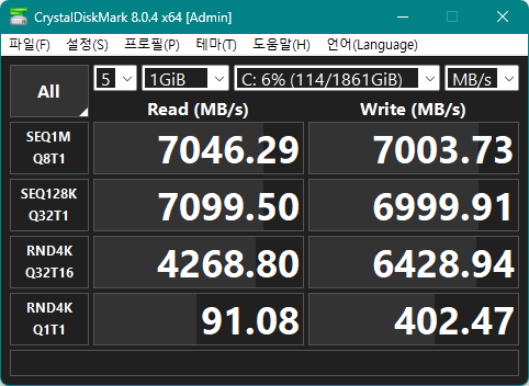 특히 랜덤 4K 동시 읽기/쓰기 속도가 엄청나게 올라갔다