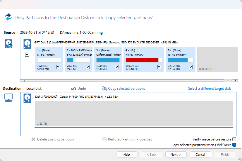 이후야 뭐 당연히 아까 떠놨던 디스크 이미지를 통해 복구를 진행