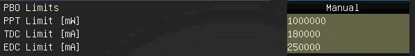 PBO 리미트는 수동 배수 설정시 볼 수 있던 값들을 그대로 수동으로 적었다