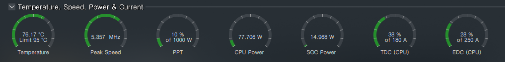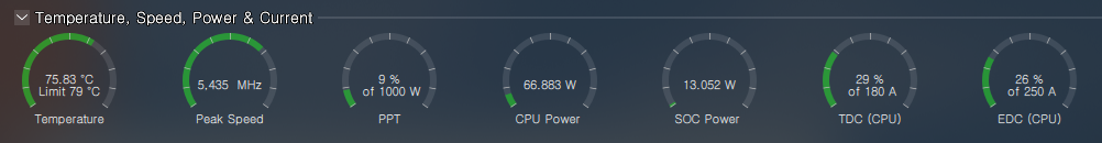 79도 제한에 걸려 5.3GHz 정도에 머무르다보니 5.35GHz 수동보다 약간 낮은 성능이 나오지만 이 정도 차이는 뭐 감내할만