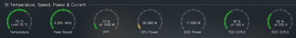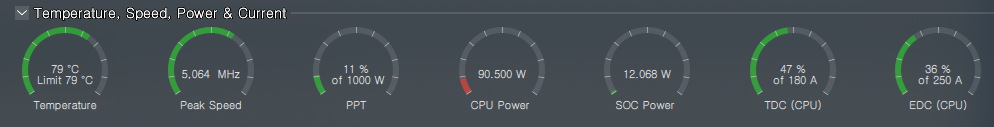 81도를 넘어간 상태로 계속 로드가 걸리면 그냥 리셋돼버리는 현상이 있기에 온도제한은 79도로 걸어놨다