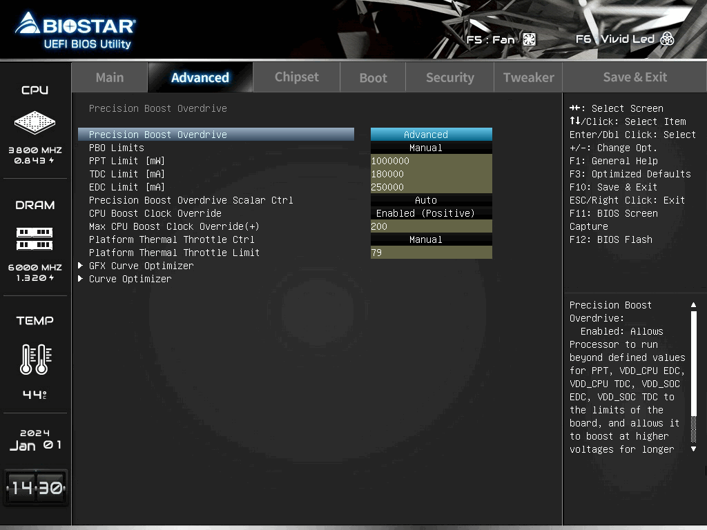 앞선 글에서도 수정으로 덧붙여놨지만 바이오스타 공홈에 2023년 11월 27일자로 올라와있는 바이오스는 아무리 발버둥을 쳐봐도 PPT TDC EDC 제한이 풀리지 않아서 PBO 설정에서 클럭이 5.15GHz 위로 터지지 않는 치명적인 문제가 있으니 절대 올리지 말도록