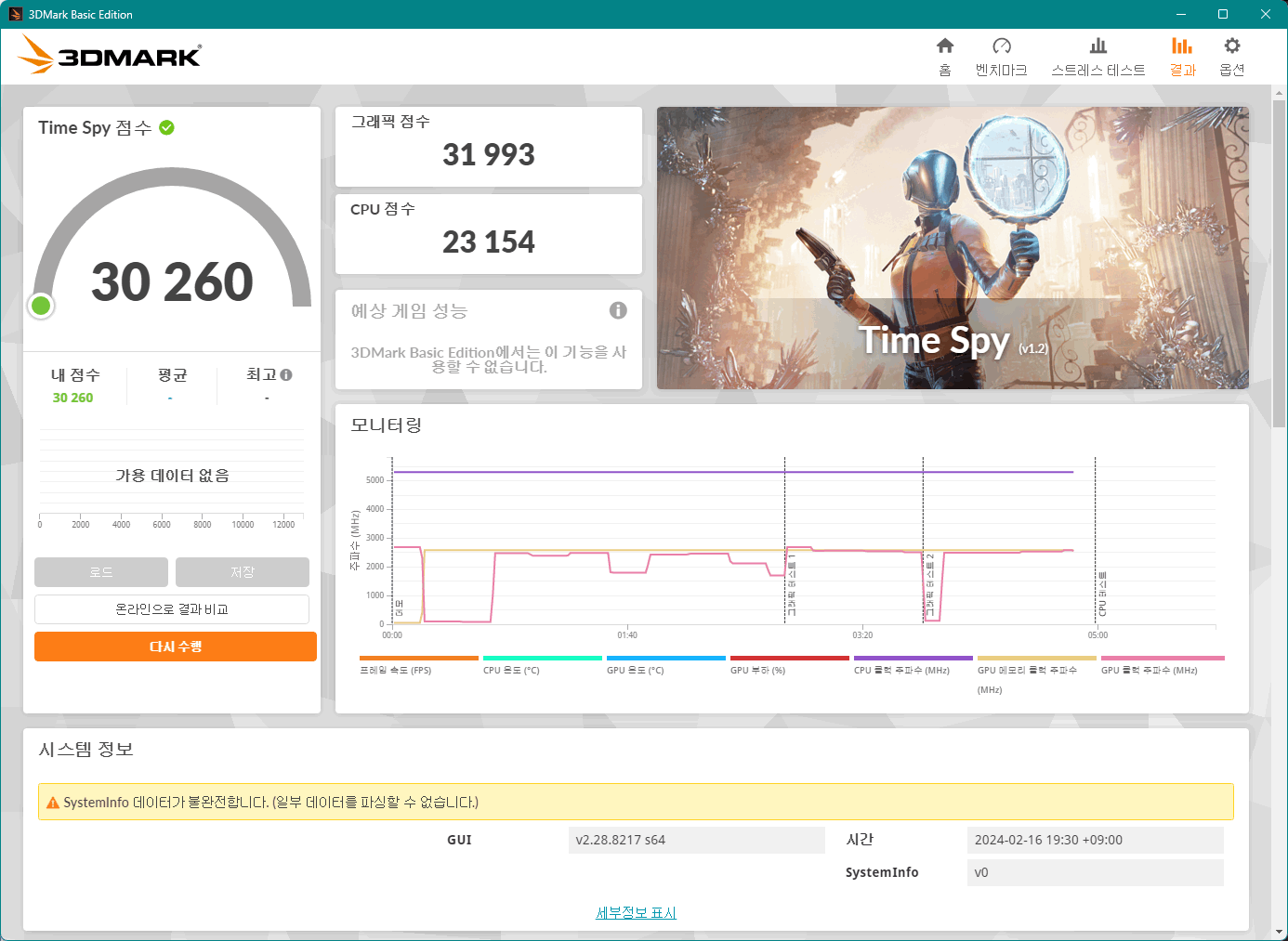 타임스파이 점수는 되레 거의 32000점에 가깝게 향상