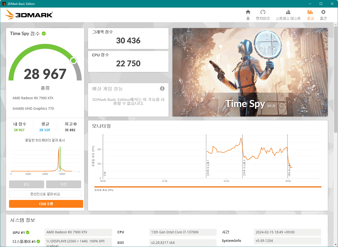 전에 쓰던 6900XT가 21000 정도였으니 큰 폭으로 성능이 올라갔다