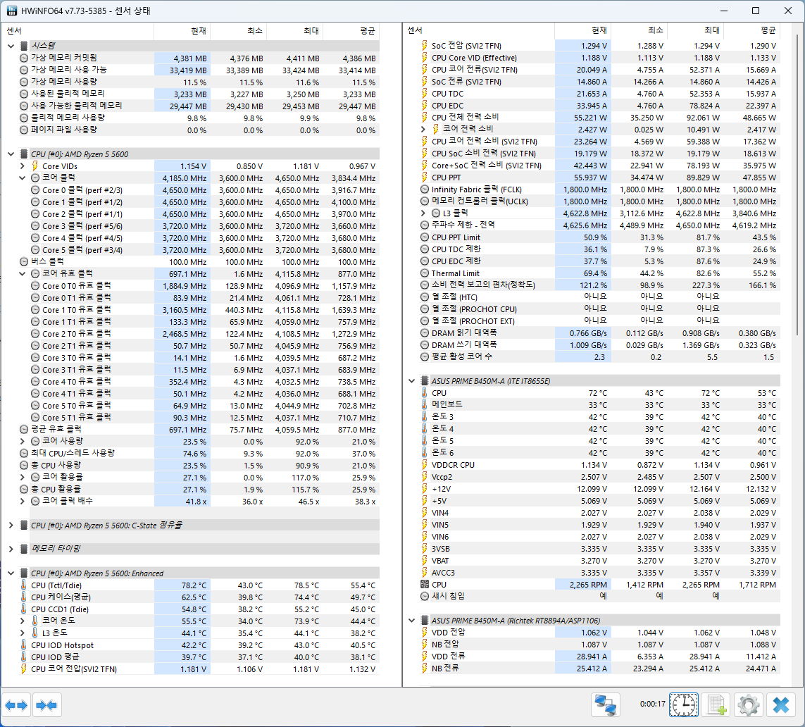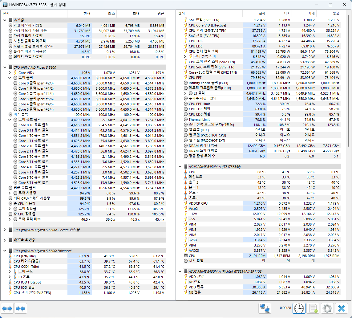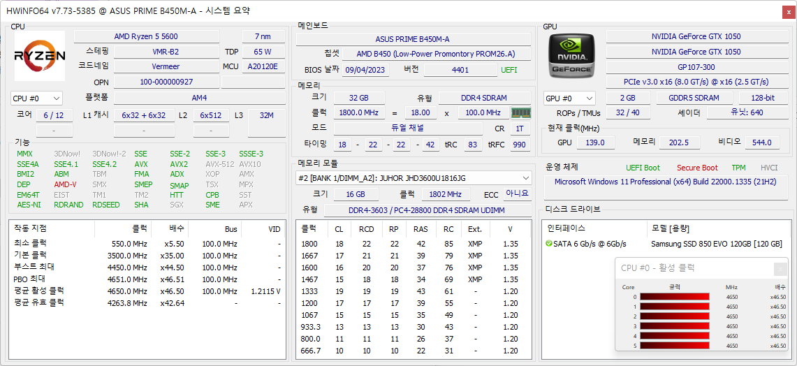 낮은 부하에서 최대 4650MHz까지 부스트가 잘 터진다