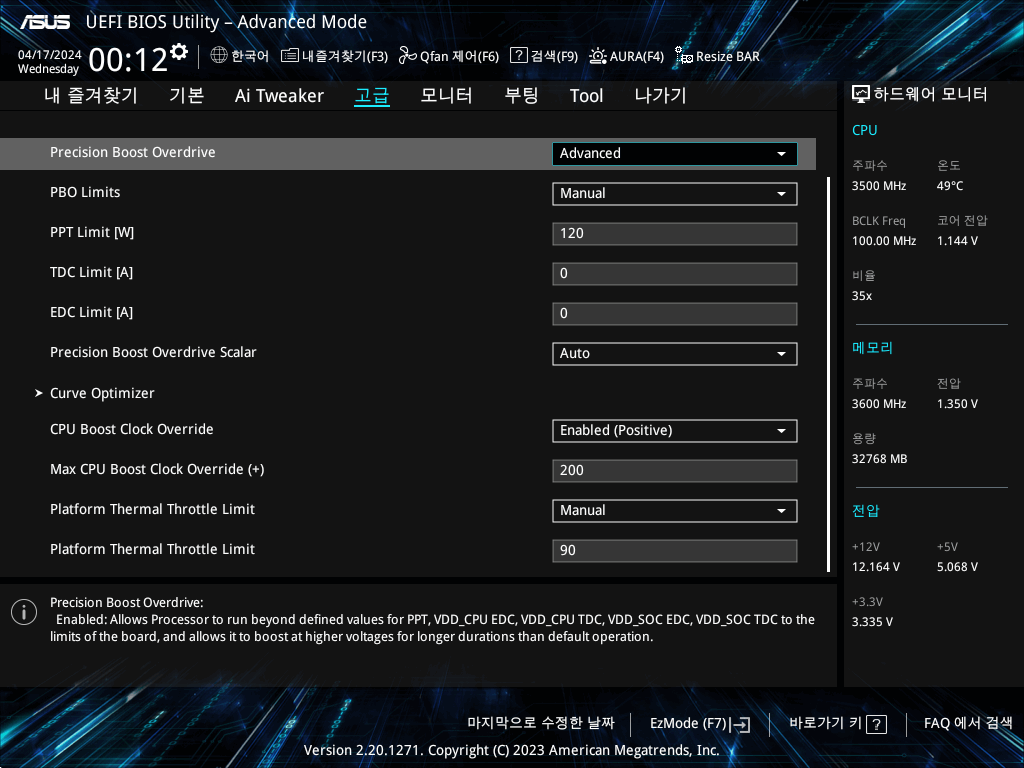 둘 중 어느쪽이 우선인지 테스트해보고 싶지만 AI 트위커쪽에 있는 PBO 옵션은 끄지도 못한다