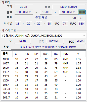1600X 멤컨이 워낙 썩어서 3600은 고사하고 3333조차 안 들어간다