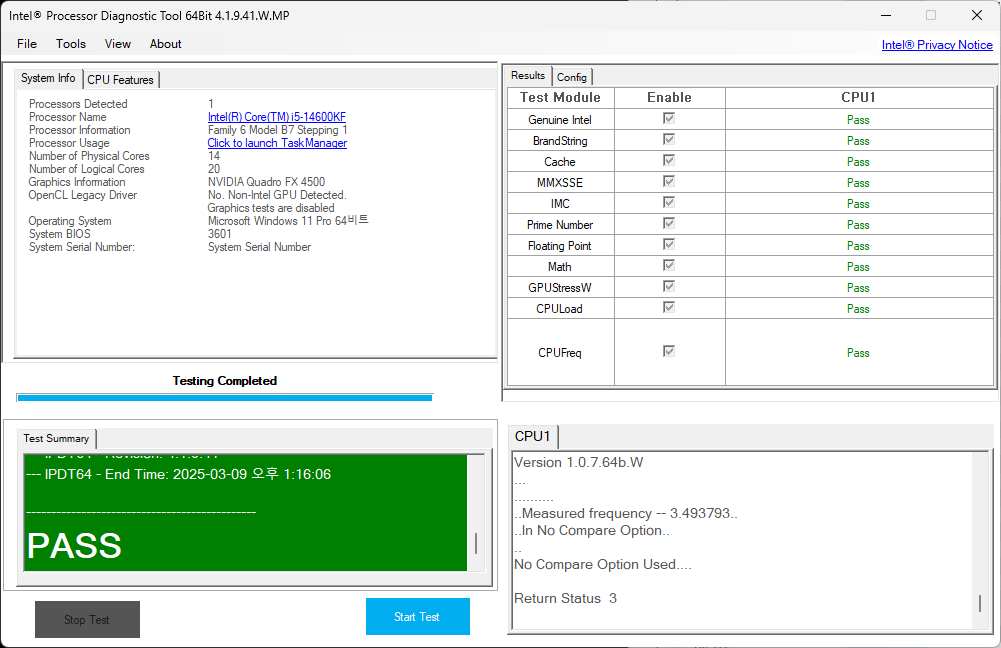 성능은 그대로고 인텔 프로세서 진단 도구도 무사히 통과한다
