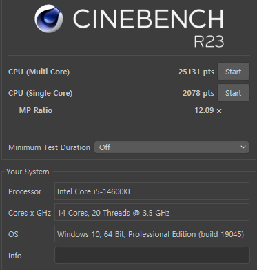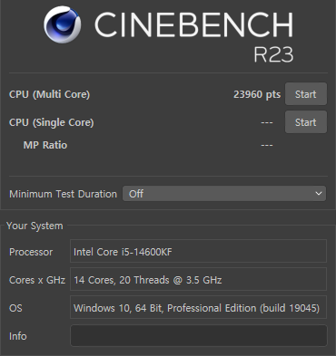 시네벤치는... P코어 5.05GHz일 떄가 24000이었는데 5.3GHz 다 터뜨려도 4.8% 남짓 올라가고 끝이라고?
