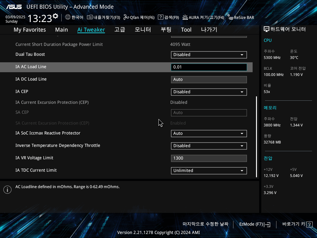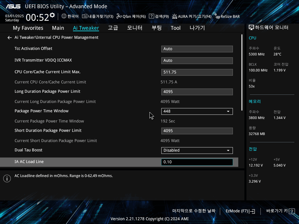 더 쥐어짜볼까? AC 로드라인을 아예 최저치인 0.01로 설정