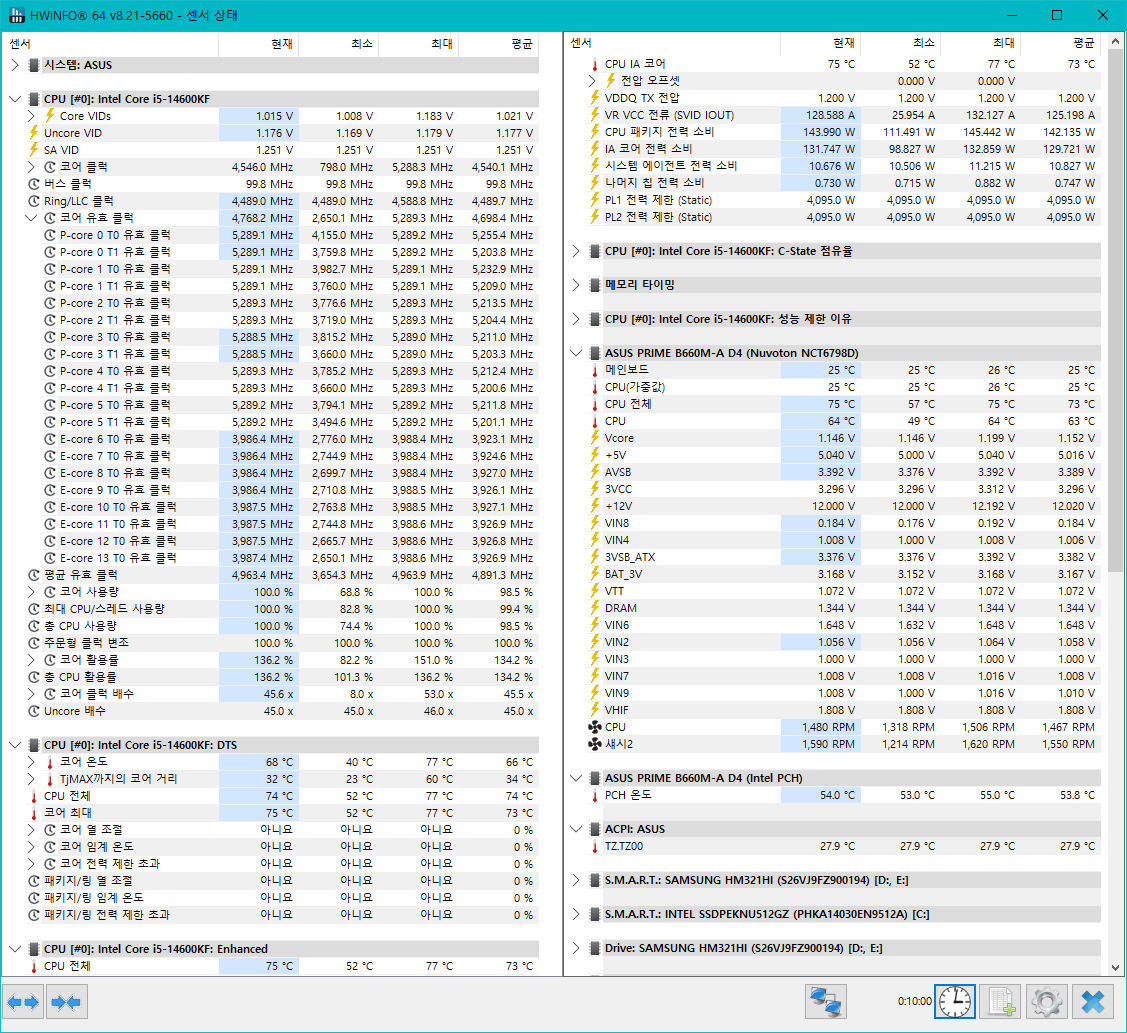 문제는 13/14세대 이슈 이후 나온 최신 바이오스라 인텔 디펄트 설정을 적용하면 전압은 근 1.3V를 때려박으며 P코어는 50.5배수 정도밖에 터지지 않는 애매한 모양새가 된다