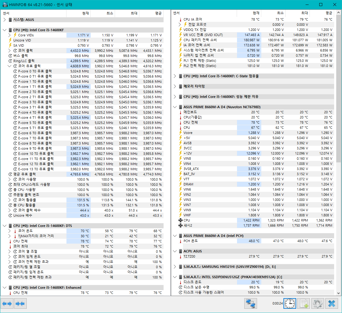 전류값이나 PL1, PL2 제한을 있는대로 풀어줬는데 사실 뭐 적당히만 풀어줘도 되겠지 싶다