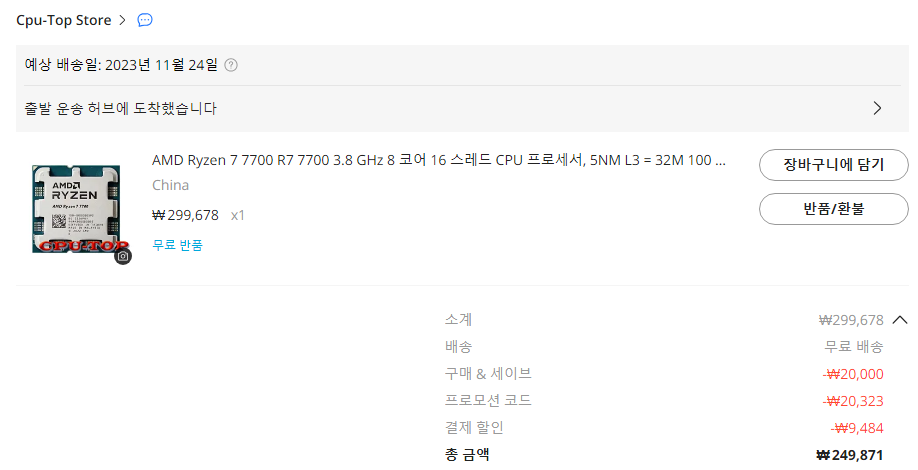 CPU는 24일 도착 예정이라더니 광군제 할인 땜에 물량이 폭주해서인지 29일이 돼서야 받을 수 있었다